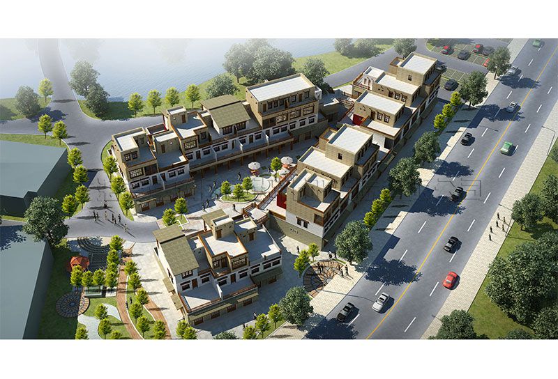 在設(shè)計(jì)中同時(shí)將當(dāng)?shù)匚幕慕ㄖA與中式圍合式院落的精粹完美的融合在一起,呈現(xiàn)出區(qū)域建筑獨(dú)有的風(fēng)范,詮釋居住理想的要素。8個(gè)獨(dú)立的住宅建筑組團(tuán)構(gòu)成的圍合式建筑院落,讓人們的生活能夠享受到屬于自己的相對(duì)獨(dú)立的生活花園景觀(guān),締造居住生活的理想。形成了連續(xù)的商業(yè)步行街,結(jié)合商業(yè)街景觀(guān)締造舒適精品的購(gòu)物環(huán)境。使居住商業(yè)配套成為有機(jī)整體,為居民創(chuàng)造良好的居住生活品質(zhì)。